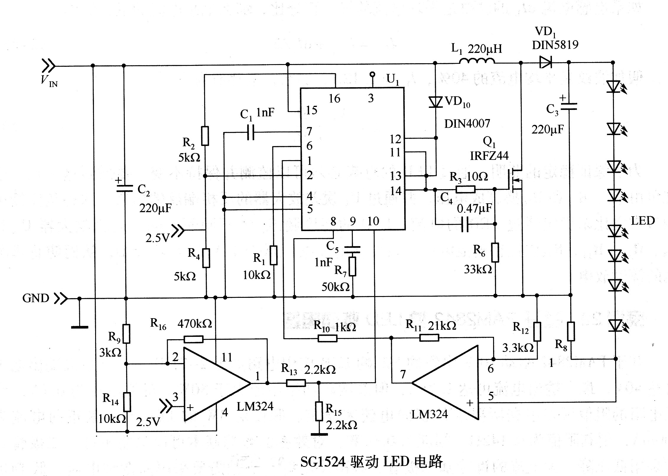 • SG1524驅動LED電路